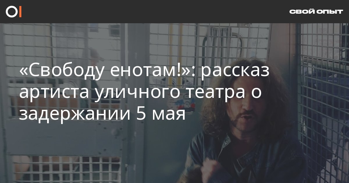 На протестах 5 мая 2018 артиста Евгения Гитиса задерживали не просто дважды, но с енотом и одноколесным велосипедом. Его фотографии с енотом из ОВД «Тверской» широко разошлись по СМИ и соцсетям. Гитис рассказал ОВД-Инфо об обстоятельствах задержаний.
