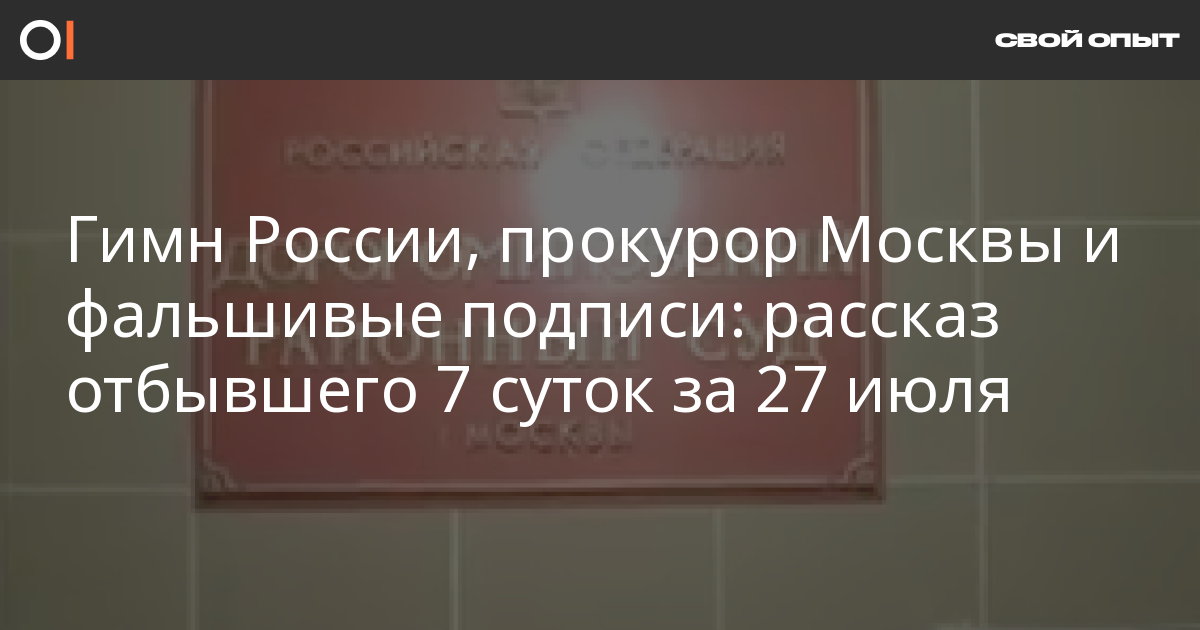В районе девяти [вечера 29 июля] меня привезли в суд, в 21:50 началось заседание по моему административному делу. Поскольку адвокат был занят в других процессах, я ходатайствовал о переносе заседания, его тут же удовлетворили. Рассмотрение назначили на следующий день.