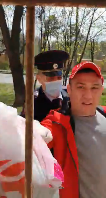 Доброволец нашелся, Чермен Хугаев (руководитель молодежной организации «Коммунистов России» — ОВД-Инфо). Его привели в опорный пункт, оформили за нарушение режима самоизоляции, а дальше сказали: пригласите еще пятерых на протокол. Мы стали искать еще пятерых человек, люди встали из-за столов, согласились добровольно пойти. Но полицейские сказали: пятерым мы оформим протоколы, а все остальные пойдут на оцифровку: сдавать отпечатки пальцев, паспортные данные, фотографироваться. Мы, естественно, отказались и извинились перед Черменом: это было глупое решение посылать его добровольцем.