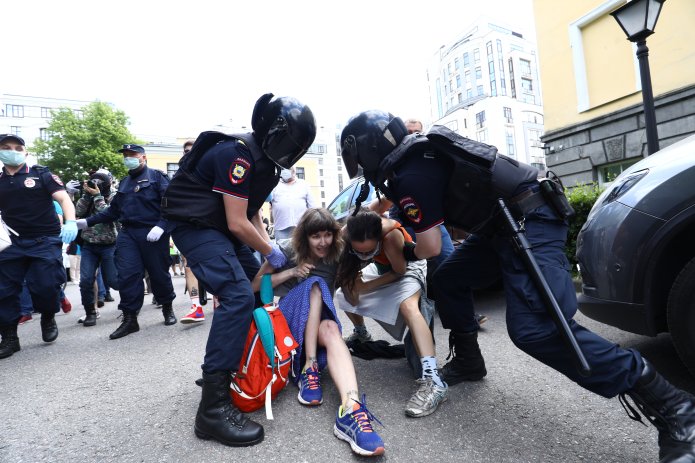 Нас стали очень жестко выхватывать из толпы, я плохо понимала, что происходит, кричала на автомате. Кажется, меня уронили, протащили по асфальту, задирали юбку, порвали футболку. Потом закинули в автозак.