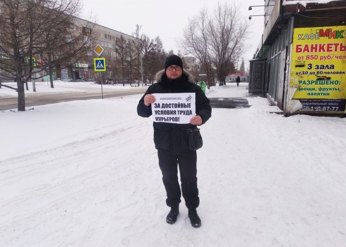 24 декабря я вышел с плакатом «За достойные условия труда курьеров». Почему я выбрал такую тему пикета? Во-первых, это настоящая профсоюзная работа (акция прошла на фоне забастовки, объявленной профсоюзом «Курьер» - ОВД-Инфо). Профсоюз курьеров не карманный, это настоящая работа по поддержке и защите трудящихся. Люди вышли и сказали: «Наши права ущемляют». Причем вышли мирно, организовались, что мы редко видим у нас в стране. Мы не могли это не поддержать как люди, которые считают, что человек труда должен стоять в середине экономики и общества. И второй, формальный момент — наш исполком [«Левого Фронта»] вынес решение устроить акцию по всем городам.