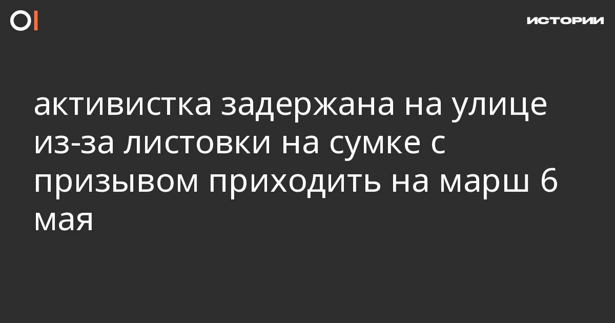 активистка задержана на улице из-за листовки на сумке с призывом приходить на марш 6 мая